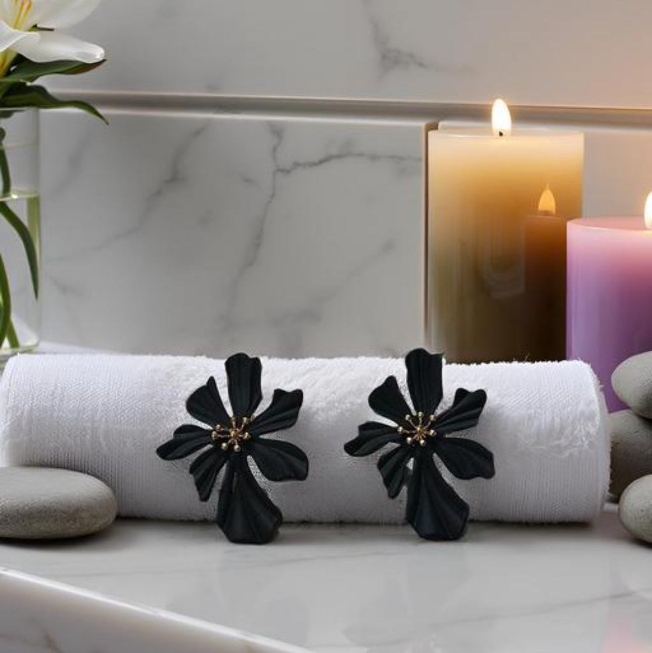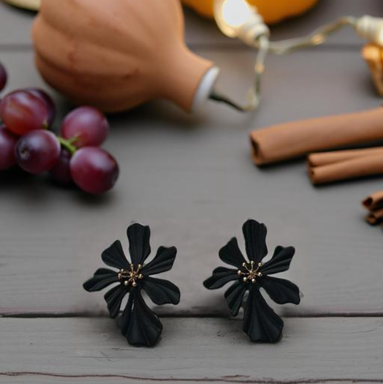 Bring a touch of sunshine to your style with the Black Floral Minimal Stud Earrings by Jewels by Radhya. These elegant earrings feature a charming floral shape in a soft black hue, perfect for adding a pop of color to your look. Whether you're dressing up a casual outfit or complementing a more refined ensemble, these imitation fine jewelry studs make the perfect statement jewelry piece.