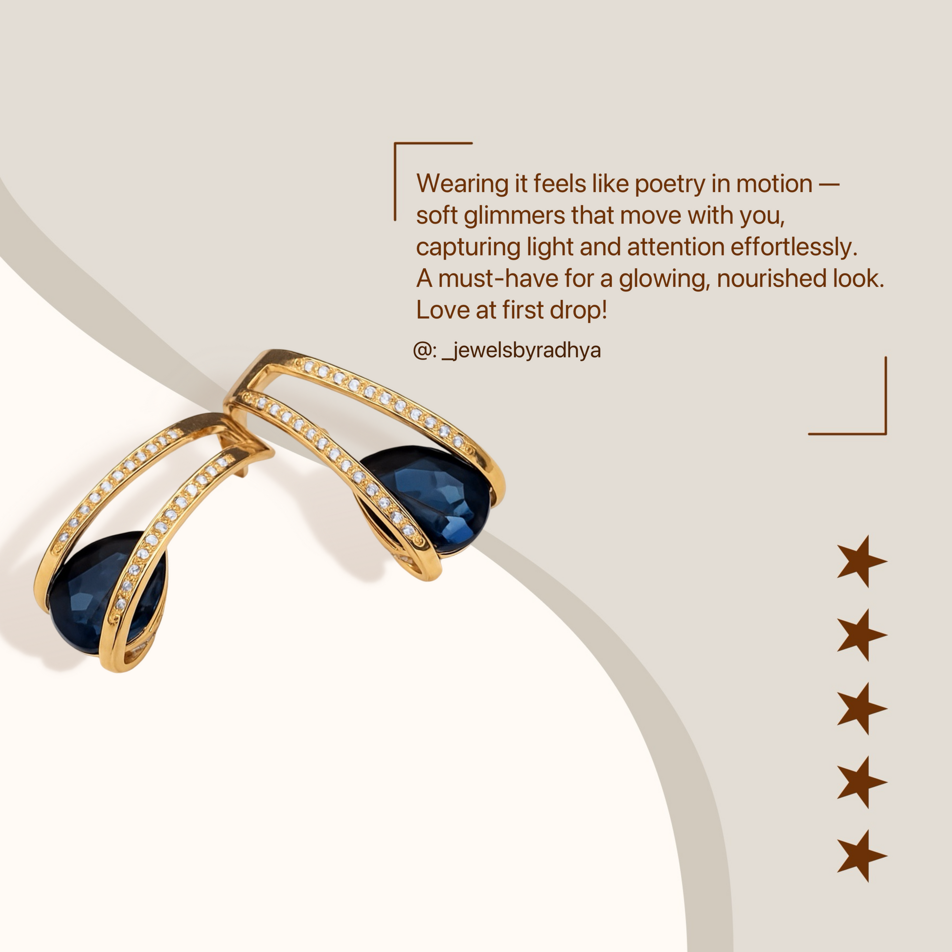 Elevate your elegance with these blue crystal-studded golden-toned drop earrings. Expertly crafted, they combine the rich warmth of gold tones with the vibrant sparkle of blue crystals, creating a refined accessory perfect for both formal occasions and sophisticated everyday wear. Their lightweight design ensures comfort without compromising style, making them a timeless addition to any jewelry collection.