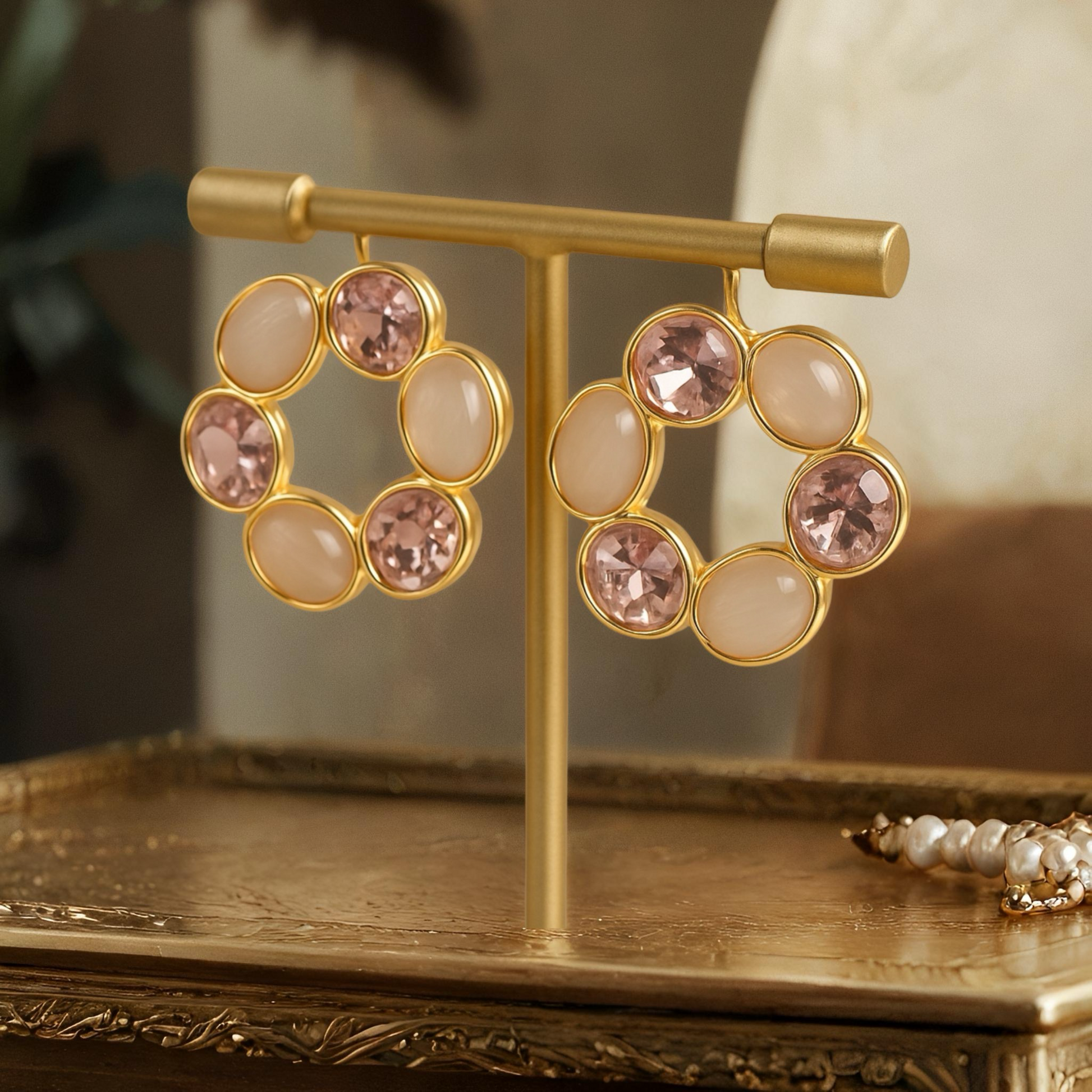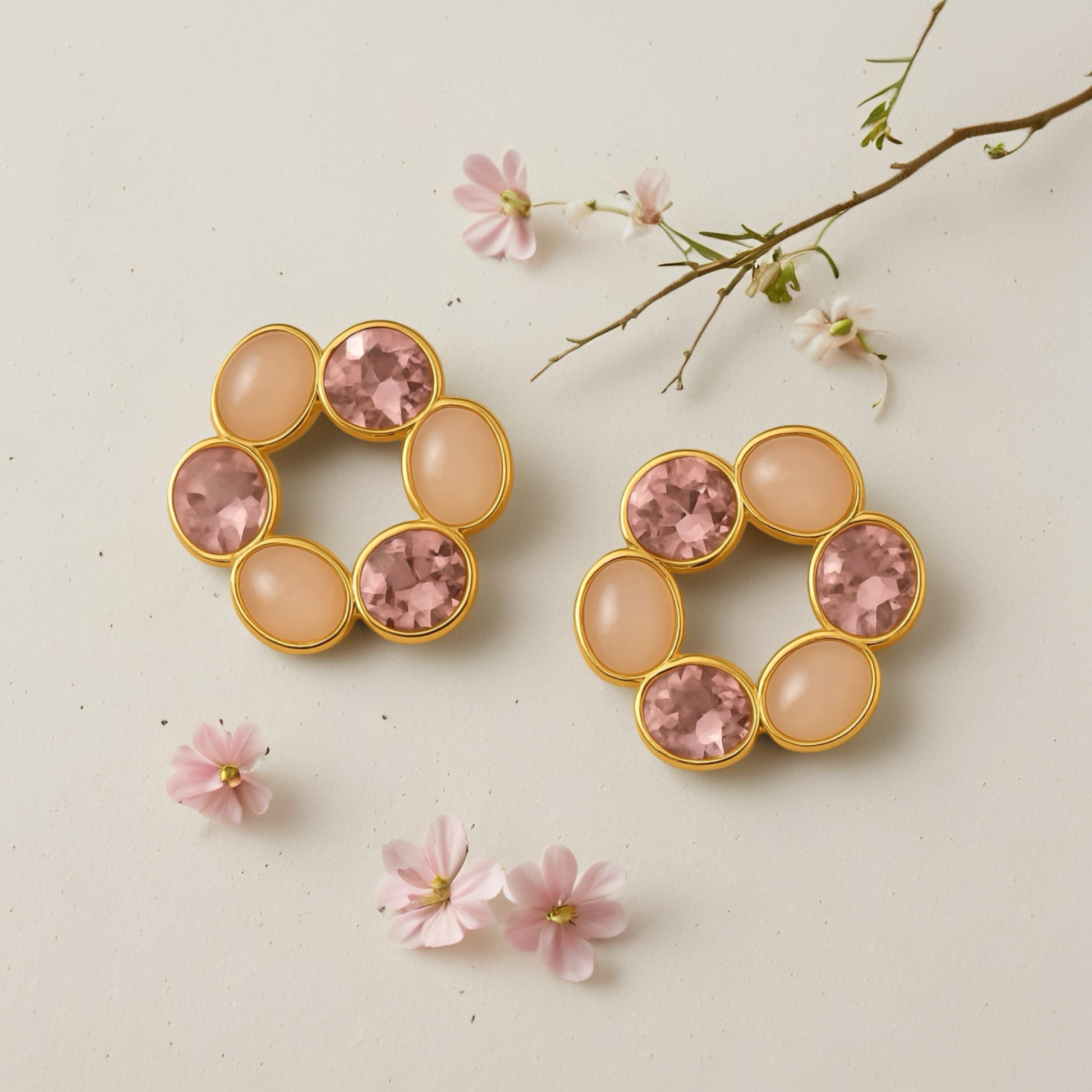 Blush Bloom Circle Earrings – Statement Floral Design with Pink & Peach Swarovski Stones