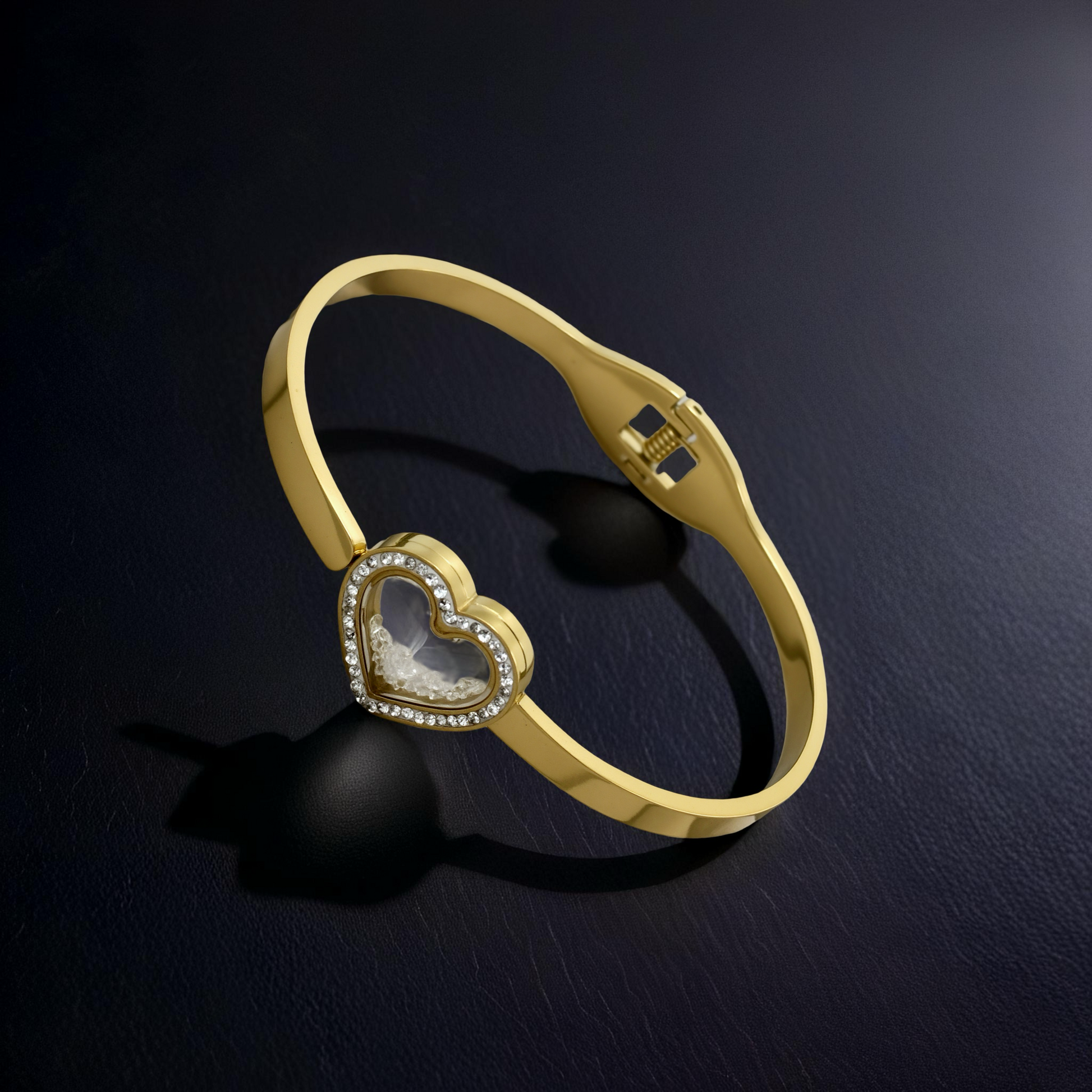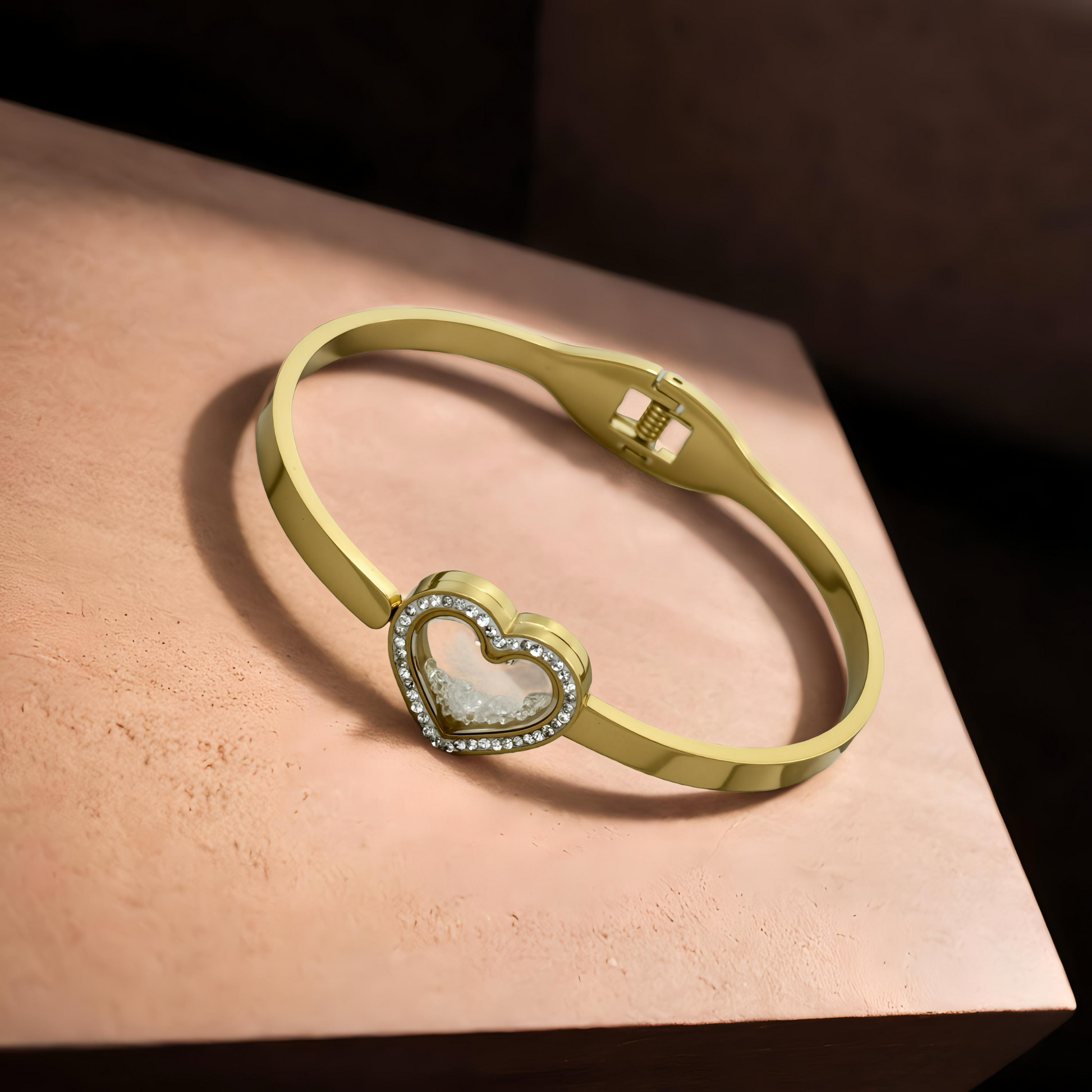 Gold Eternal Love Heart Bangle – Crystal Charm Edition