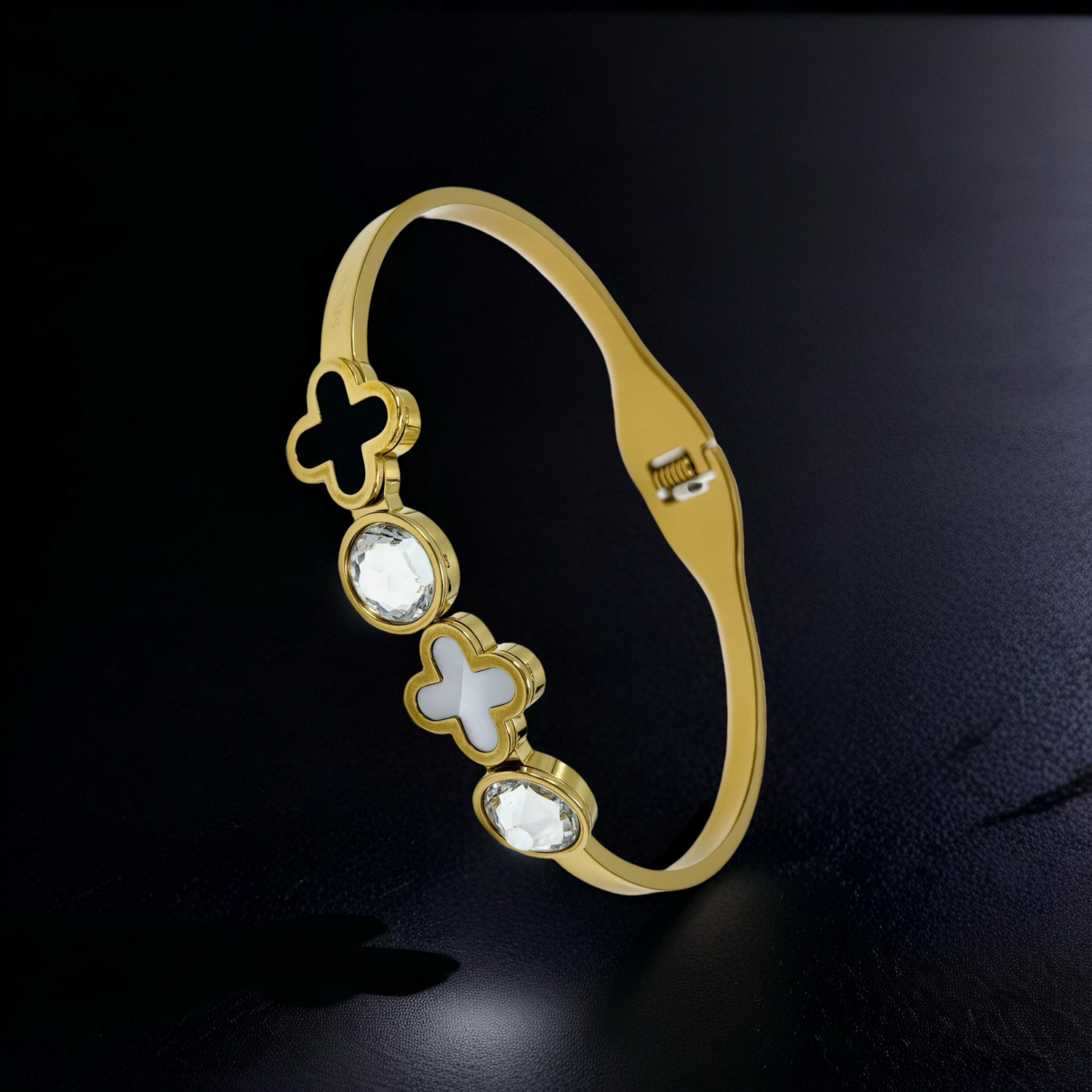 Gold Luxe Clover Bangle – Black & White Charm Edition
