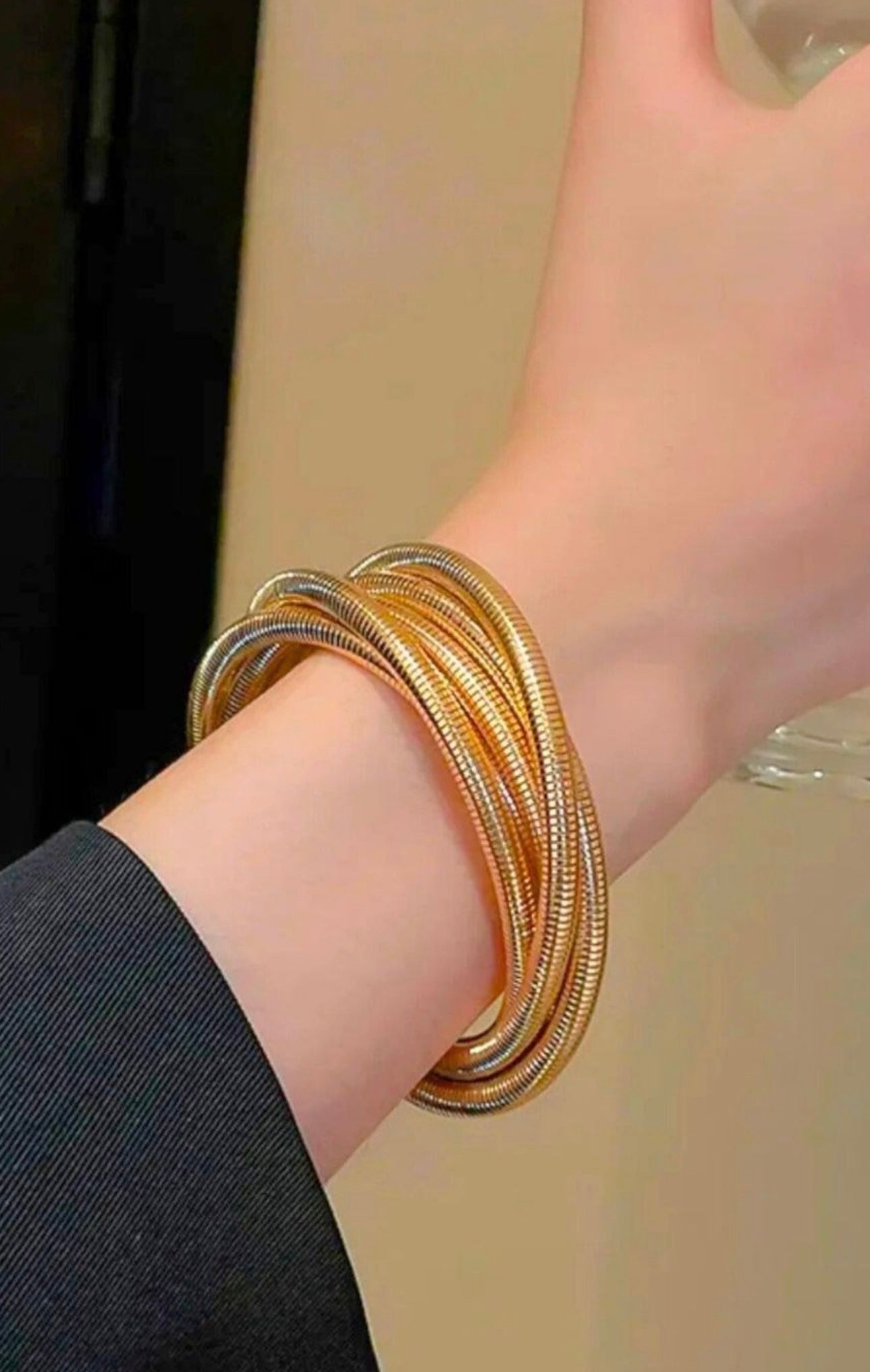 Crafted from high-quality imitation materials and protected with an anti-tarnish coating, it offers the luxurious shine of fine jewelry with the practicality of statement jewelry designed for movement and ease. Its stretchable elastic core ensures a snug yet flexible fit for all-day wear.