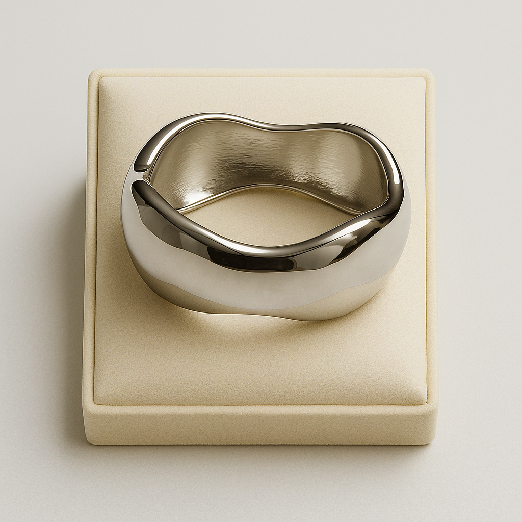 Crafted with a high polish finish and smooth curves, this bangle adds a touch of modern sophistication to both casual and formal outfits.