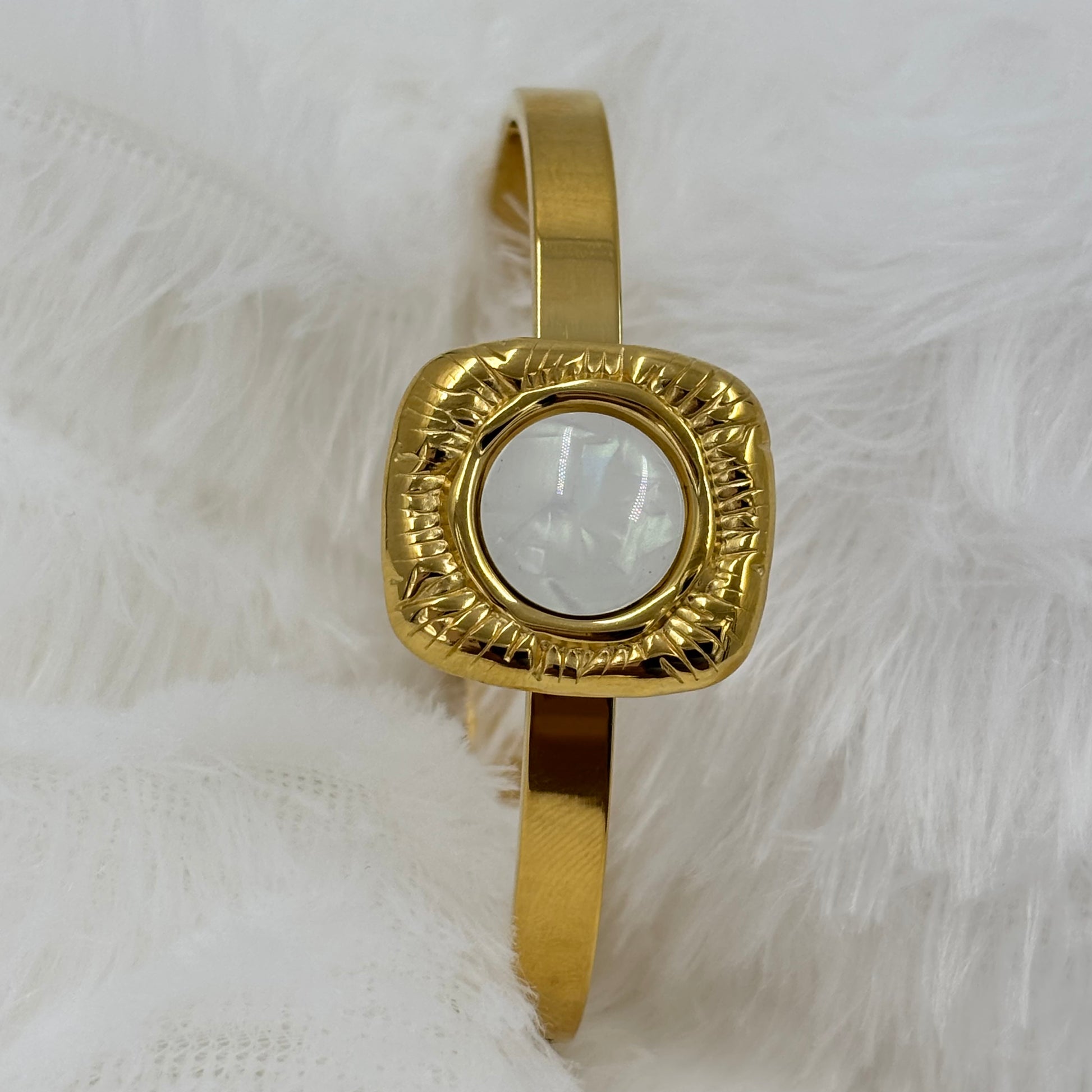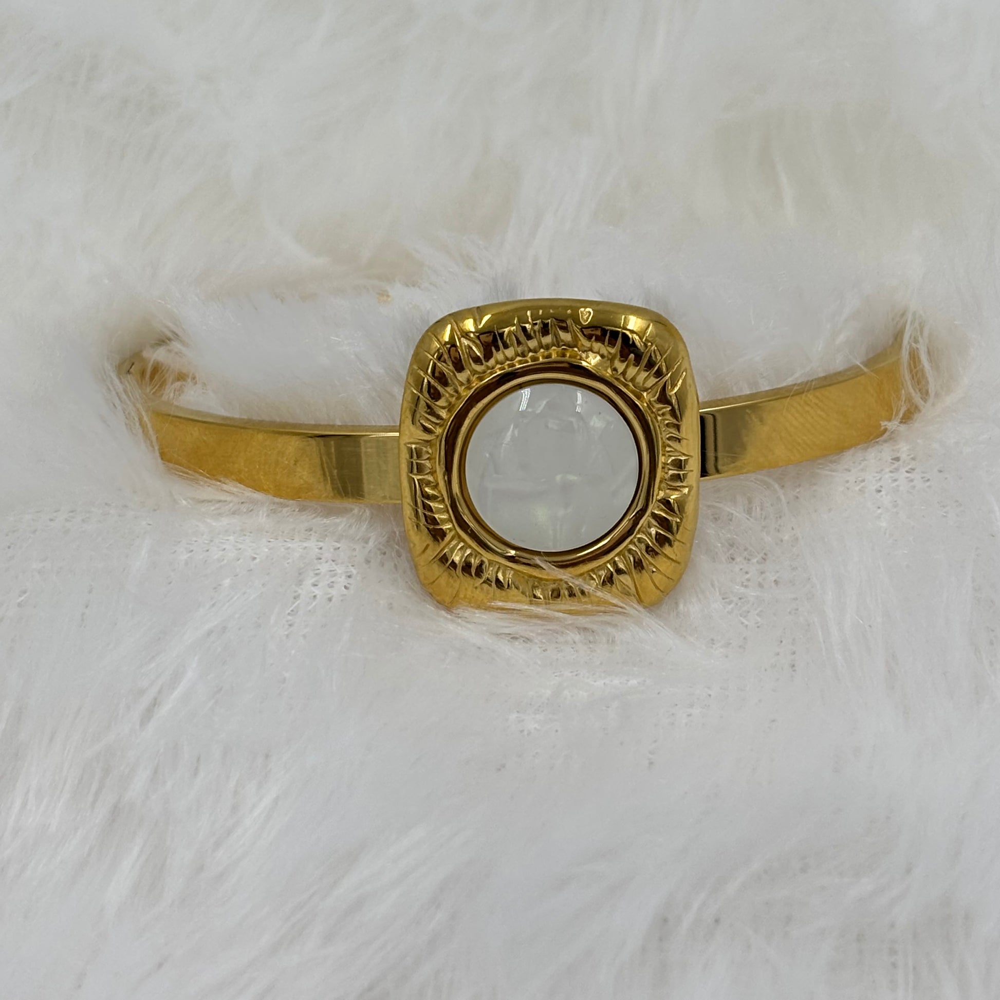 Part of our exclusive statement jewelry collection, this bangle radiates the charm of fine jewelry while offering the comfort and accessibility of imitation jewelry. Meticulously crafted to be waterproof, hypoallergenic, and anti-tarnish, it’s perfect for both everyday elegance and grand occasions.