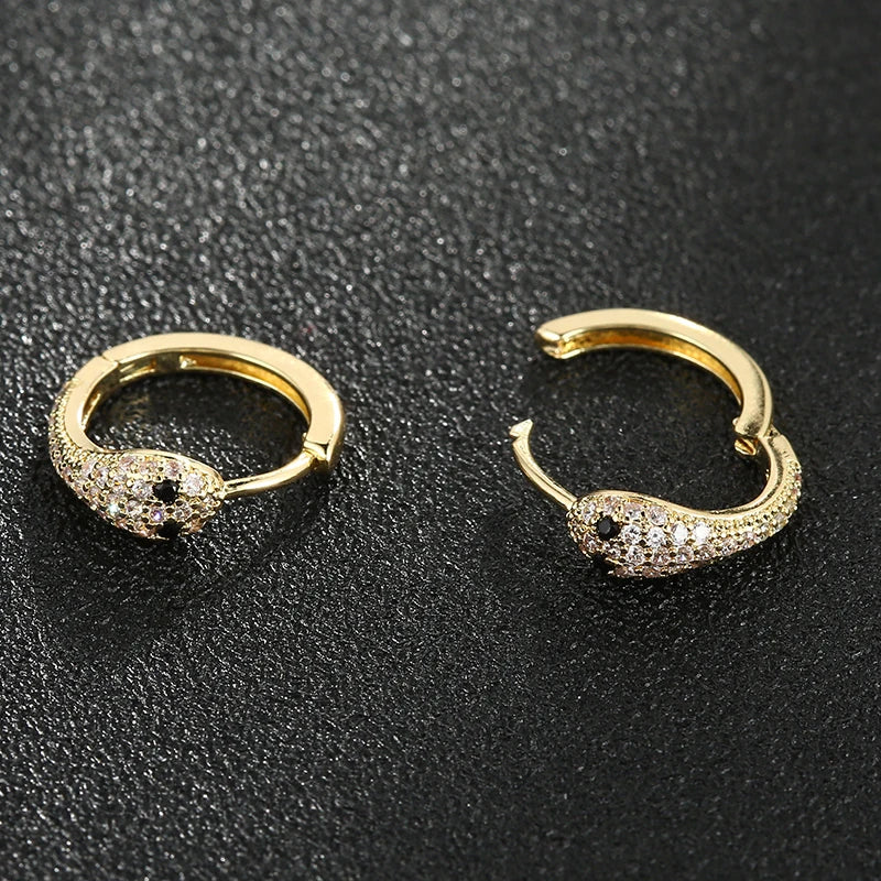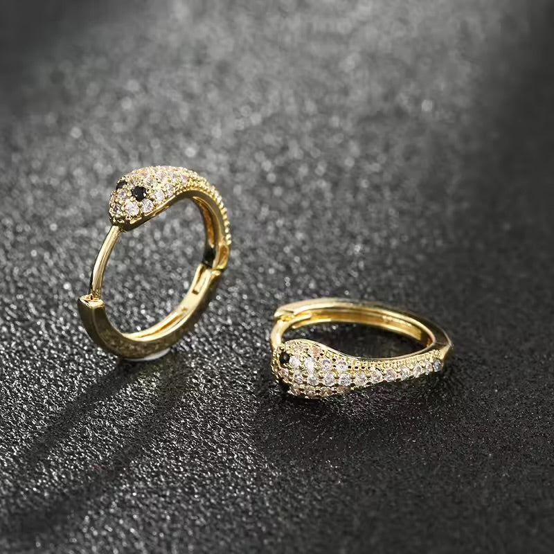 Unleash your bold side with the Snake Hoop Gold Zirconia Earrings from Jewels by Radhya — a fierce blend of symbolism, elegance, and edge. These hoops are designed in a sleek serpent silhouette, encrusted with shimmering zirconia stones that catch the light from every angle.