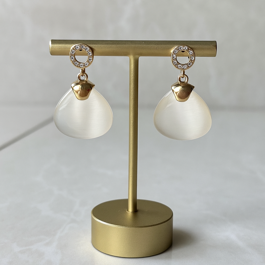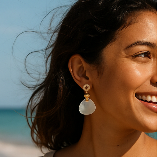 Chic and contemporary, the White Shell Acrylic Drop Earrings from Jewels by Radhya bring effortless elegance to your everyday and occasion looks. Featuring soft, iridescent shell-inspired acrylic drops paired with gold-toned detailing, these earrings make a modern yet timeless statement jewelry piece.